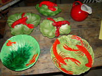 English china lots; set of fruit plates; collection of lobster