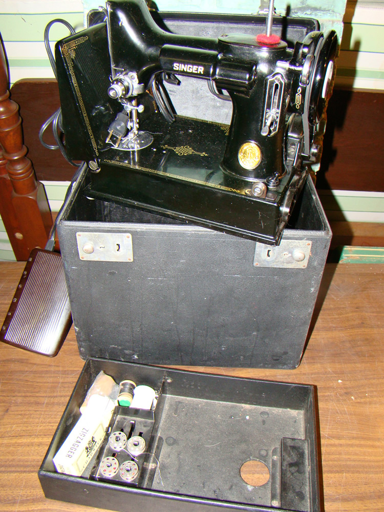 red paint; Singer Featherweight Model 221 sewing machine; 19