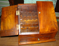 Co. octant with original box and labels; Hepplewhite tea caddy;