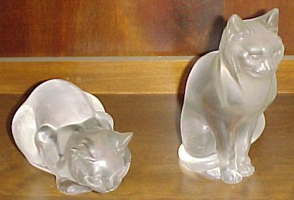 Rare Lalique cats 8 in.