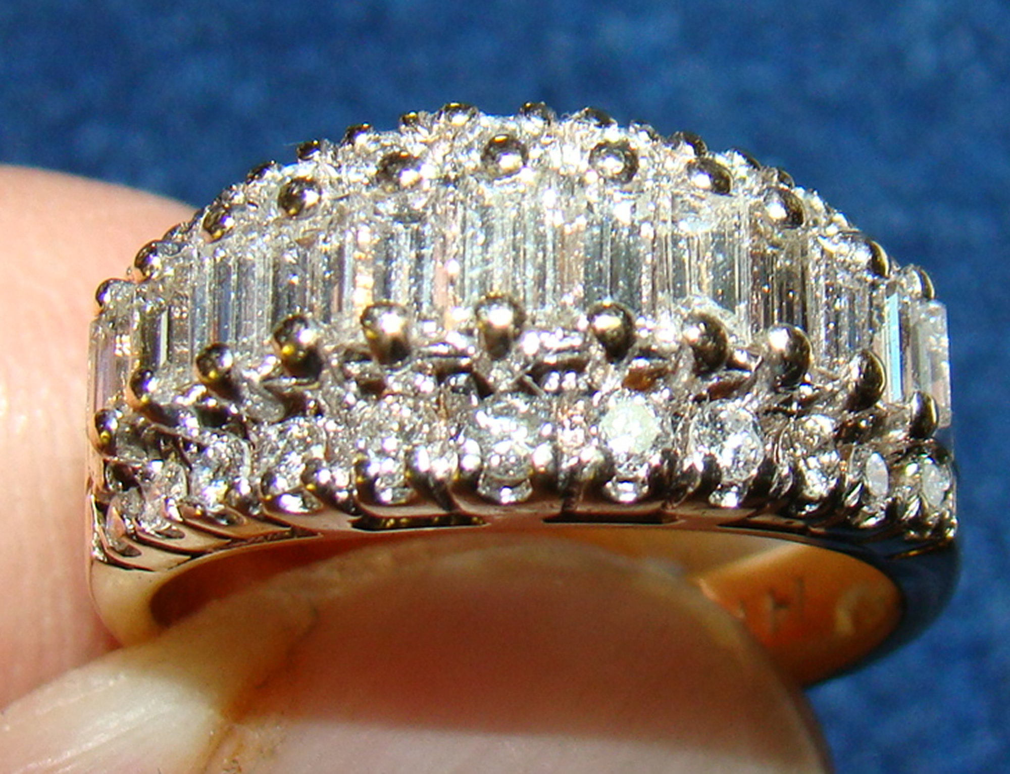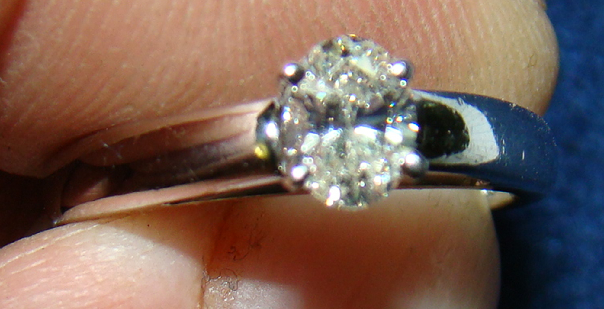 solitaire diamond ring in platinum setting; 14k gold and diamond