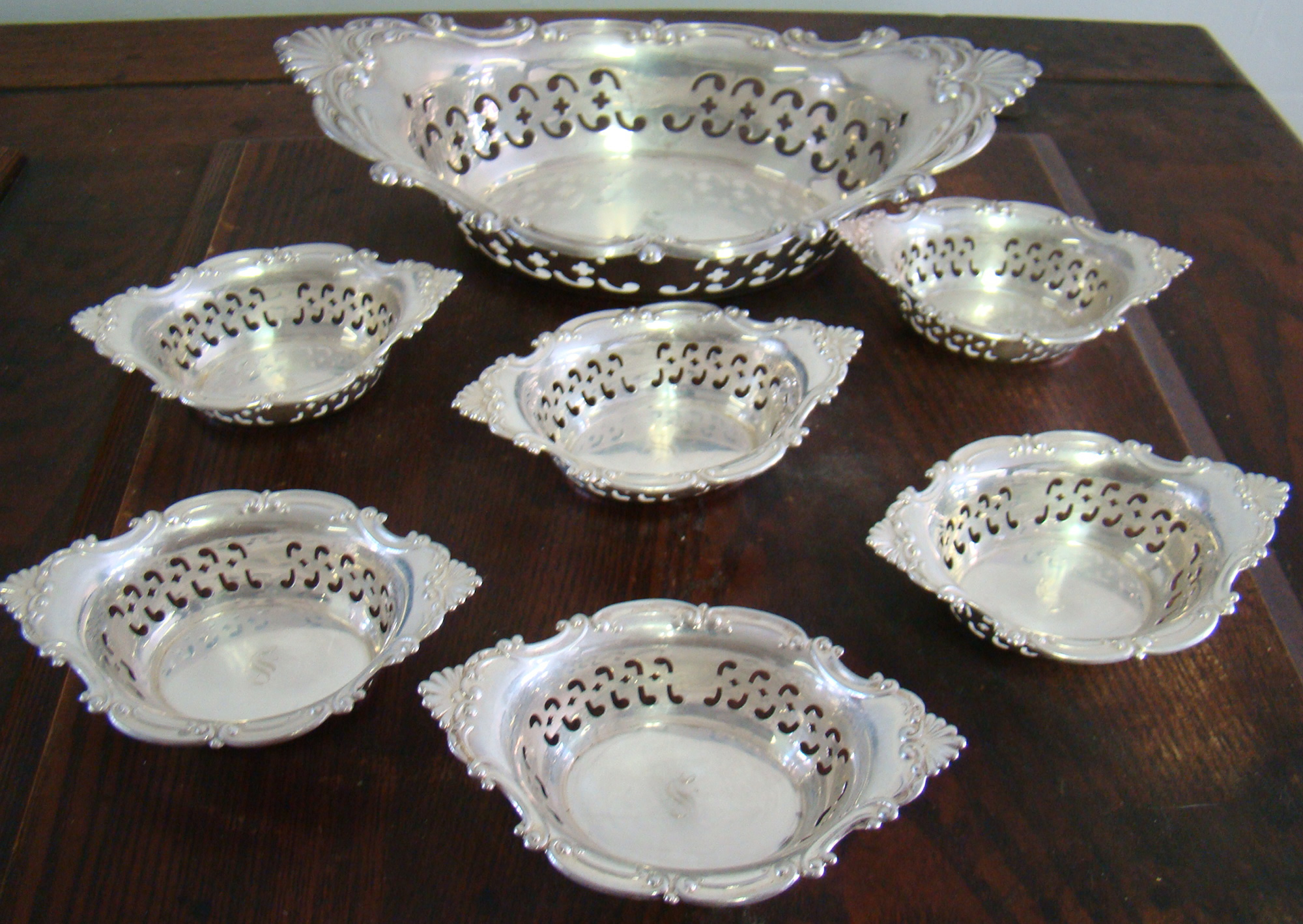 pieces sterling silver nut set; fancy sterling bowl; five (5)