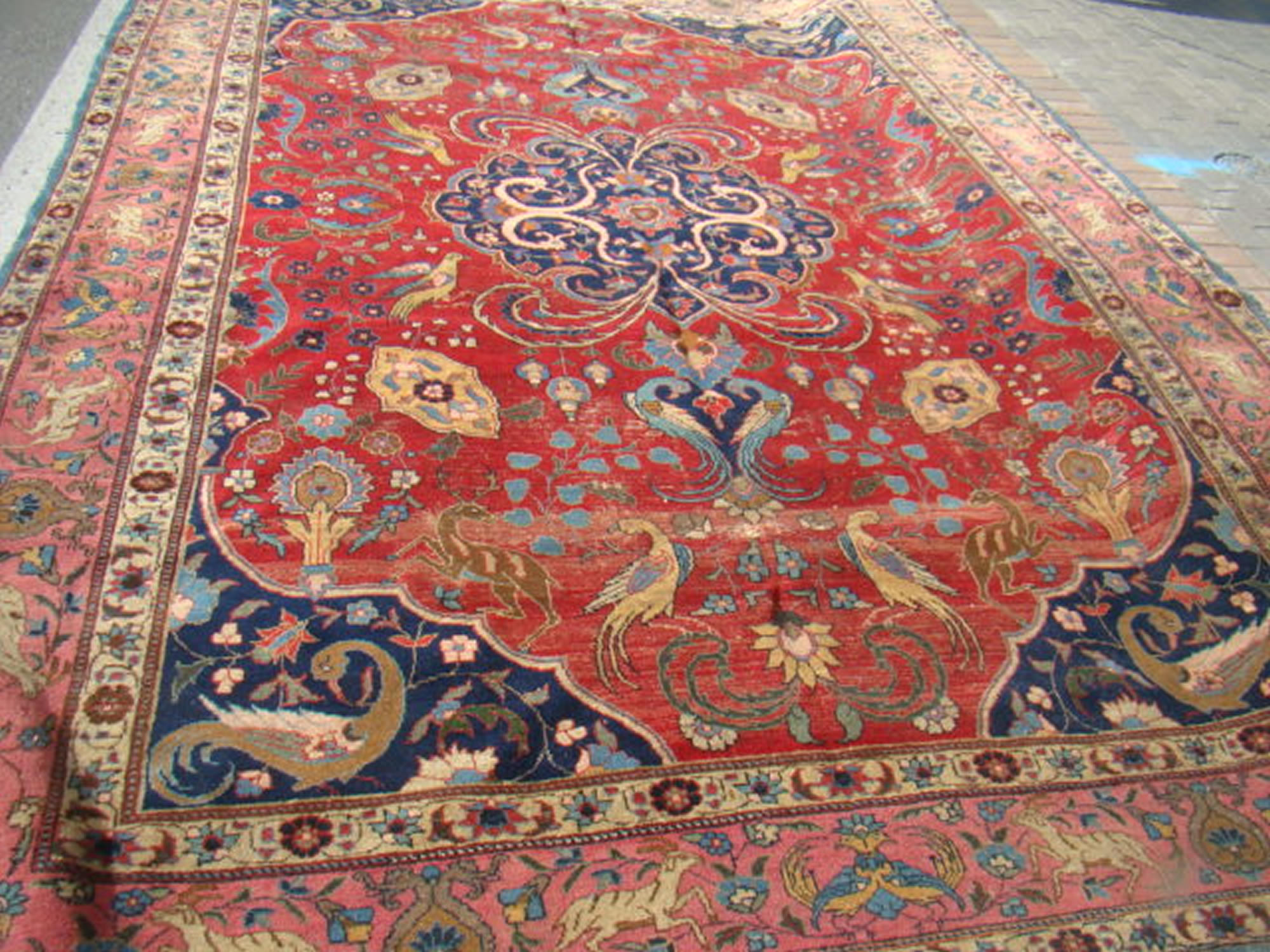 Antique Persian Heriz, 9'3" x 11'9" with soft colors in excellent condition; room-size Persian rug, 9'2" x 12'9" with burgundy field, birds, salmon border; Persian room-size carpet with floral designs and border, 9'7" x 13', some wear; two (2) antique Caucasian runners, 3'6" x 9'4" and 3'2" x 8'4"; antique Persian runner, 2'11" x 16'2" with yellow field, white border with patches of wear; heavily worn Serapi-type room-size rug approximately 9' x 12'; antique Kazak runner, 9'3" x 4' with some wear but wonderful colors; plus lots more fresh small orientals for all tastes!!