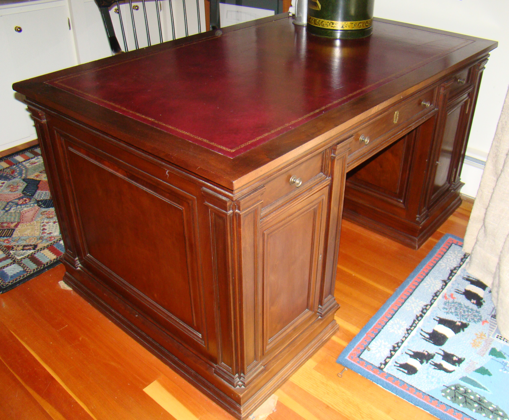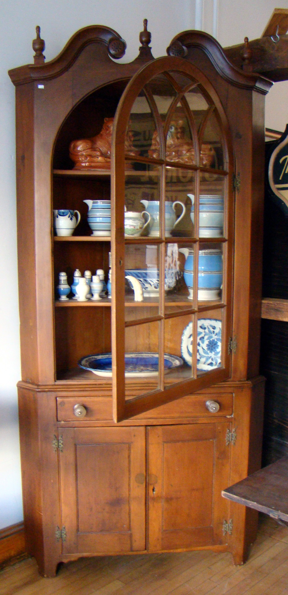 We have a good selection of fresh estate antique furniture to offer including a Pennsylvania corner cabinet with broken arch top; early original surface red blanket chest; 18 th c. 2-drawer blanket chest; mahogany partner’s desk of the highest quality, circa 1870, with tooled leather top in mint condition; Queen Ann highboy with two (2) carved fans in wonderful condition, refinished with restoration; a wonderful tiger maple 2-drawer stand; tiger maple drop leaf table; 2-piece transitional secretary desk; early 5-drawer chest; early blue paint corner cupboard; early pie safe with copper panels; custom-made Chippendale birdcage; tea table; Windsor rocker; assembled set of ten (10) Windsor chairs, along with 7-foot harvest table; set of six (6) rabbit ear chairs; and a 6-foot pine harvest table, refinished with restoration; Pennsylvania tavern table with stretcher base with original surface; Adirondack armchairs ; early 8-fot bench; early chests, chairs, and much more!!