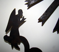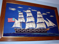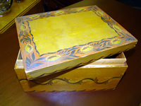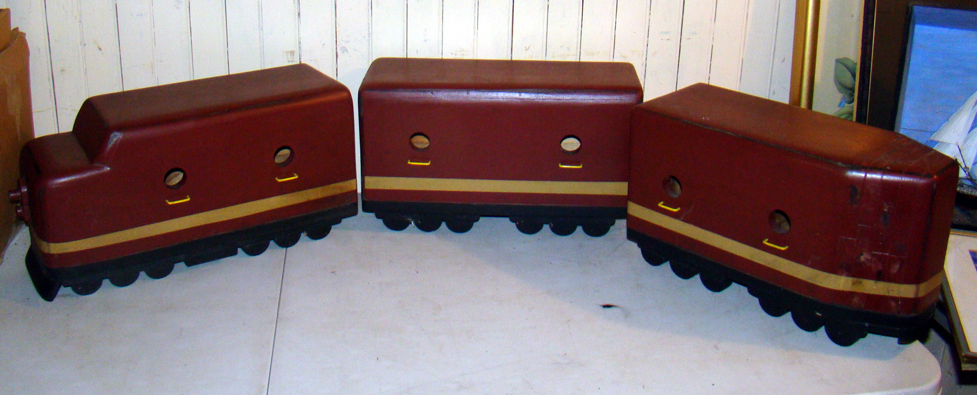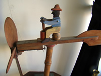 This is a very interesting part of the auction with a rare salesman sample, 3-piece set, in original condition, 1830; two (2) Bernard Langlais pieces and some Langlais attributes, silk flag, early wrought iron memorial piece; dated 1852 quilt; Mermod Freres Swiss music box; very rare Victorian swing; cradle with patent dates 1876, Indiana; wonderful broadside; early painted smalls and lots more! Also John W. McCoy’s drafting/painting table along with layers of paint!!