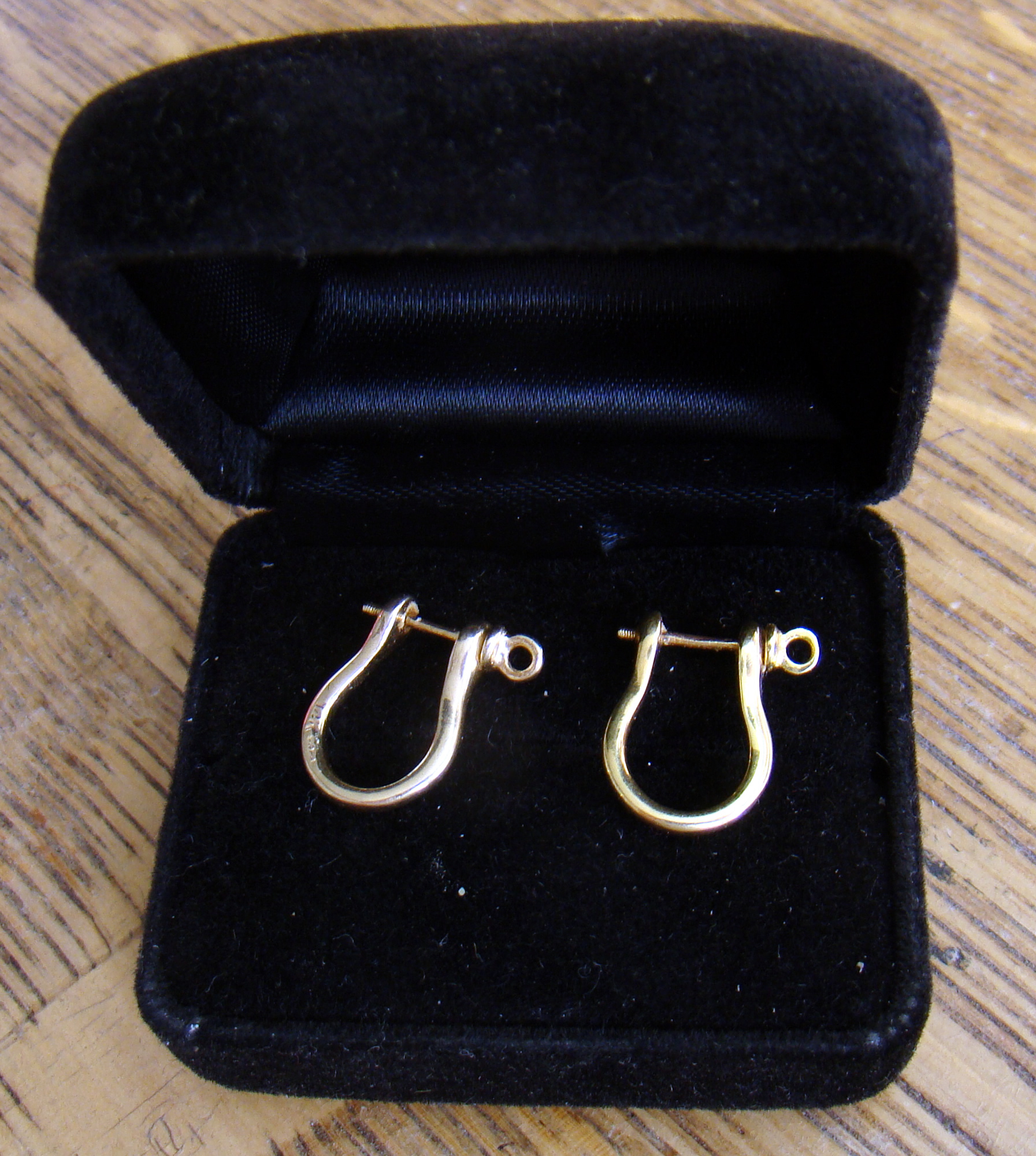 Elegant 3.5 total weight diamond ring with 1.5 solitaire marque cut center with princess cut and baguettes set in 18k gold; pair of shackle earrings from Korea, 14k; also good sterling silver and silverplate, with more coming.