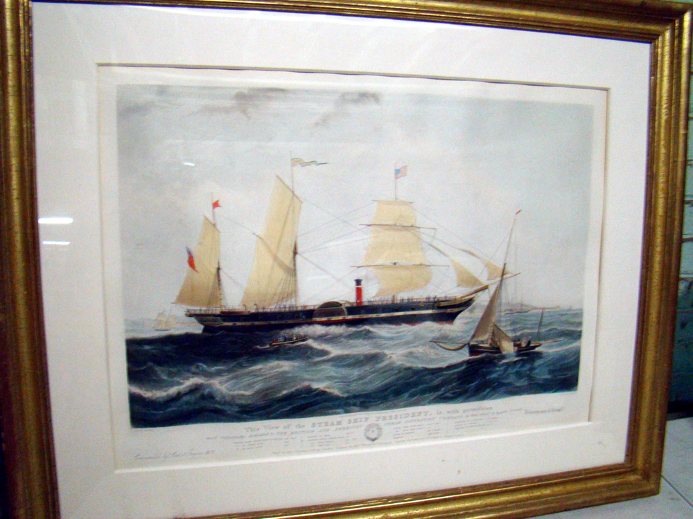 Large hand colored print of steamship President; woodblock