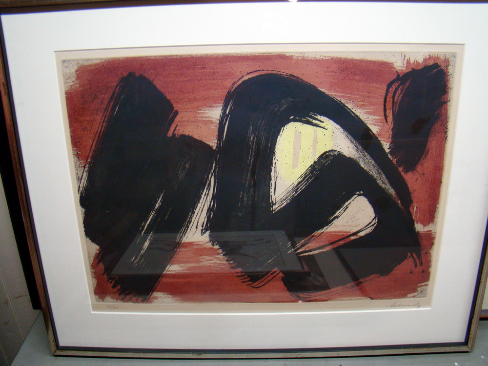 print by E. Kutozuka; 14’ x 18’ B&W signed woodblock