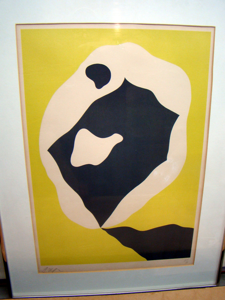 Turnbull, #212/300; abstract print with green field and cream