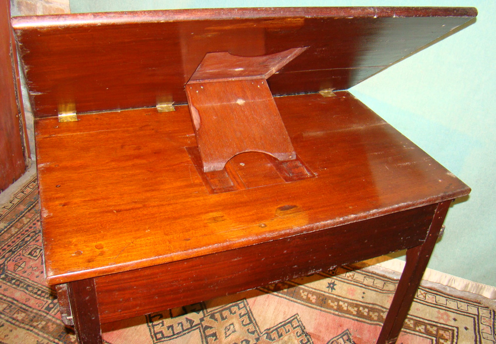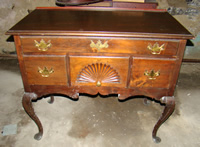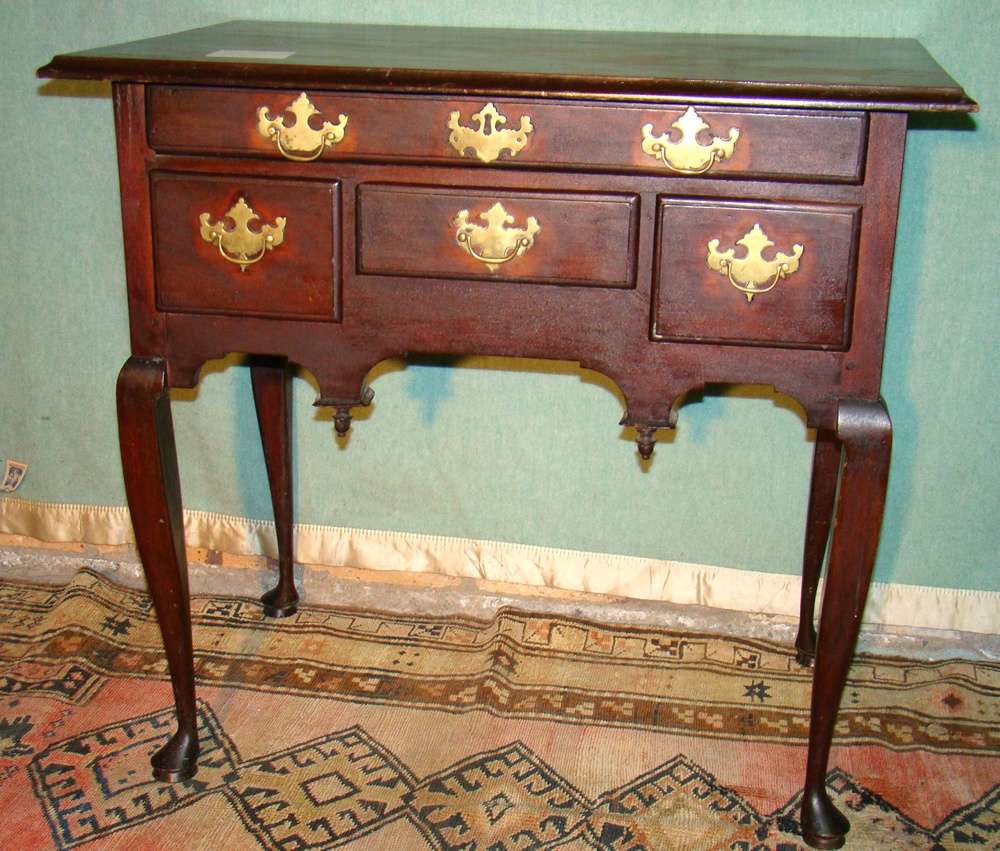 drawer; early mahogany dressing table; 18th c. metal-bound blanket