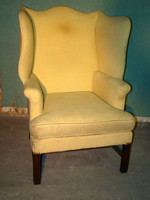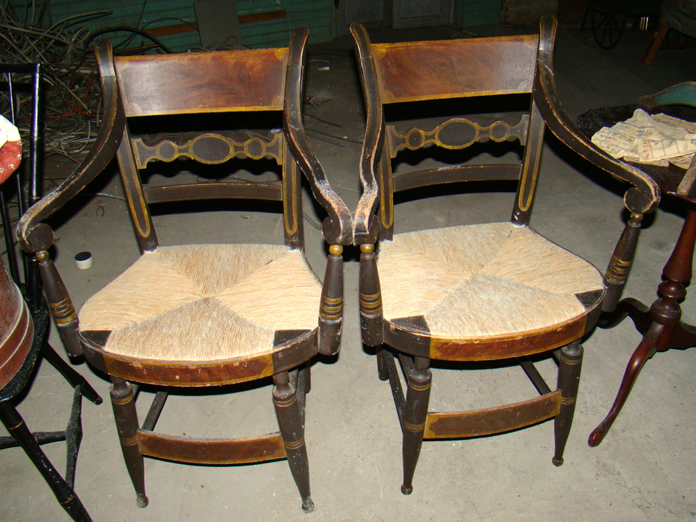unsigned dial; pair of stenciled fancy period armchairs ;