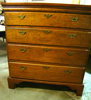 on tall legs; 18th c. 4-drawer tall pine Maine chest with old