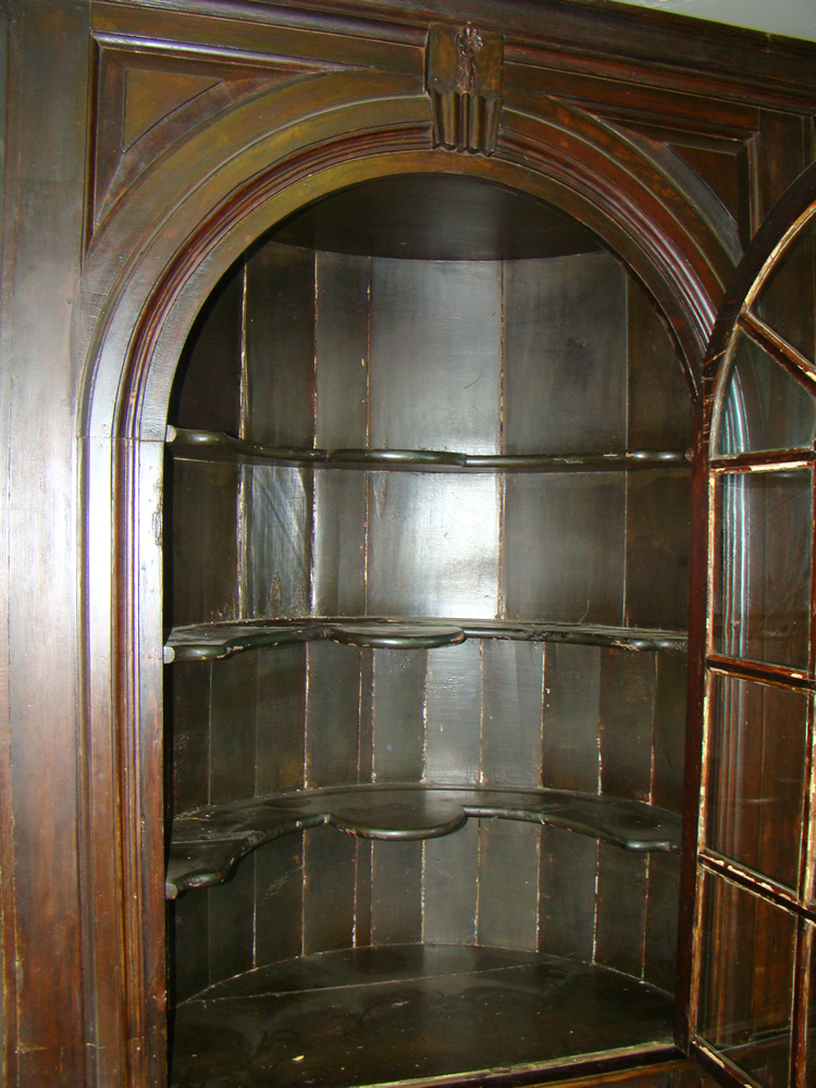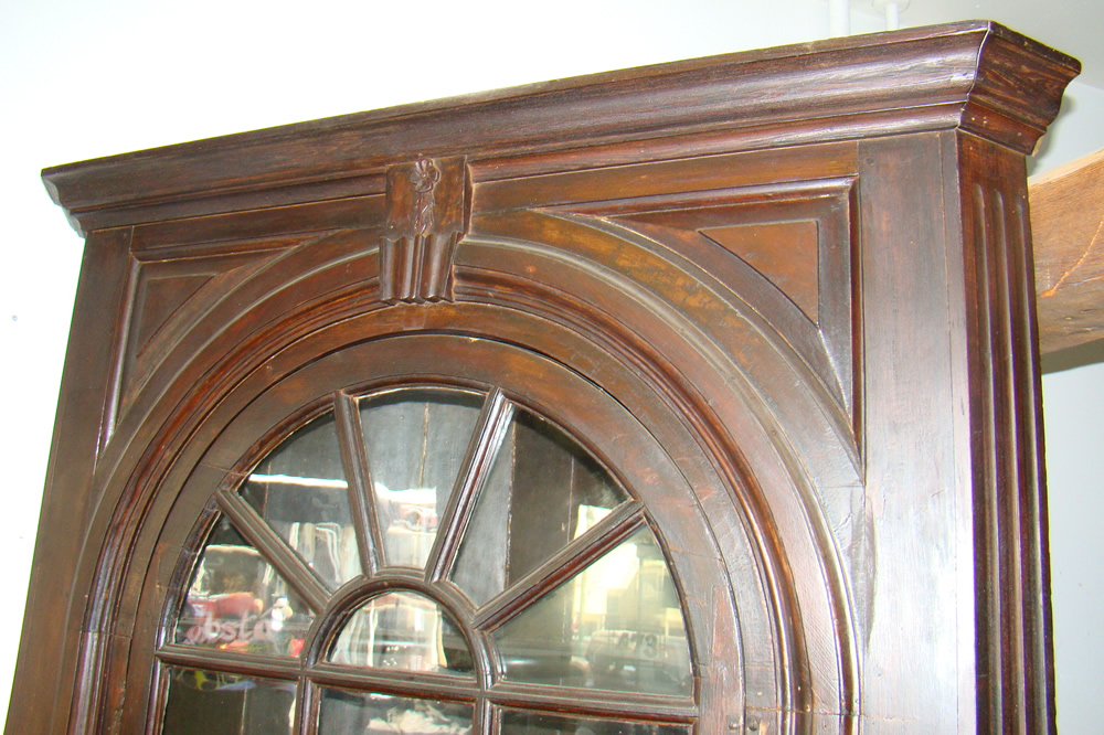 circa 1790; Pennsylvania refinished corner cabinet with arched