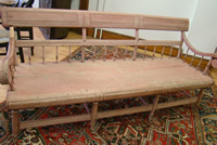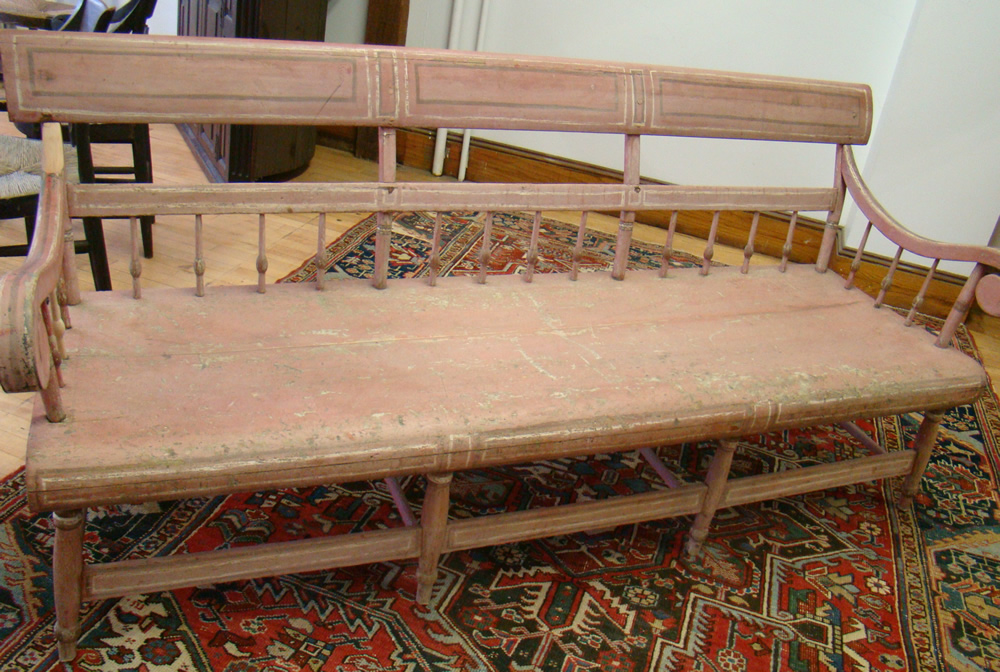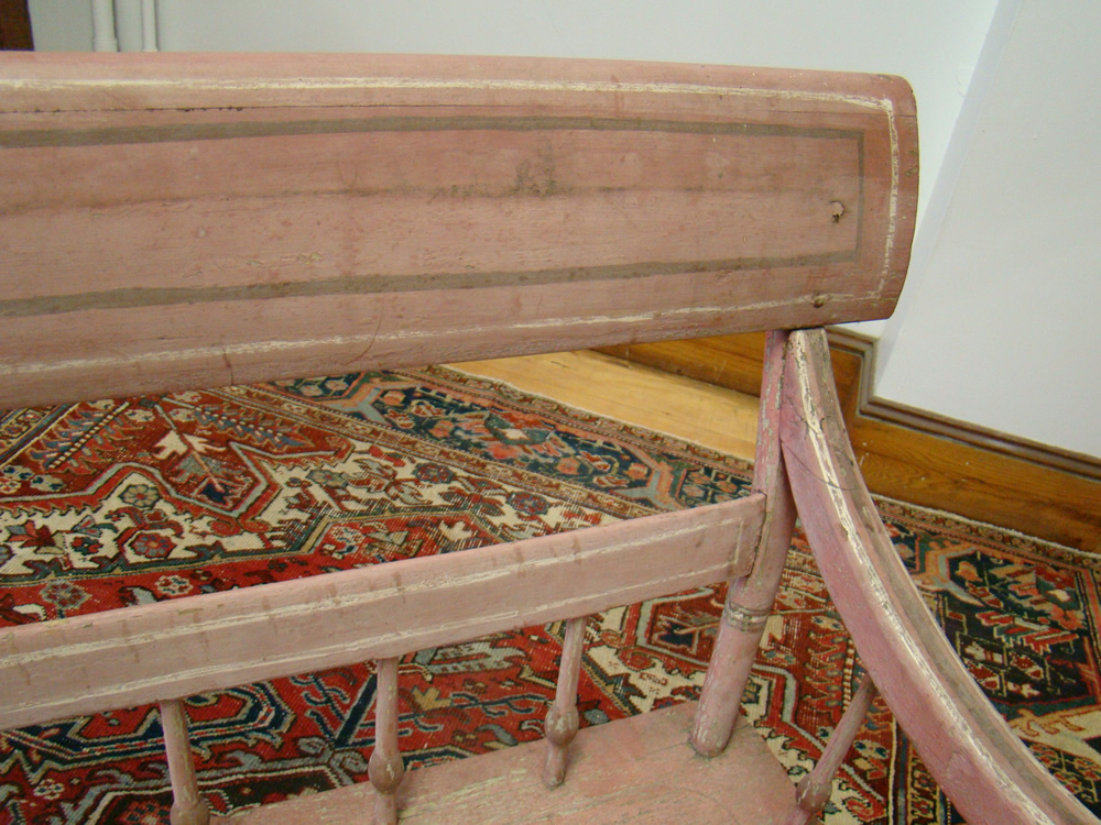 refinish; decorated Pennsylvania wide settee with weathered finish;