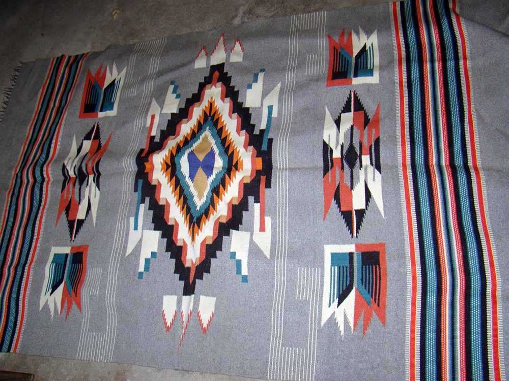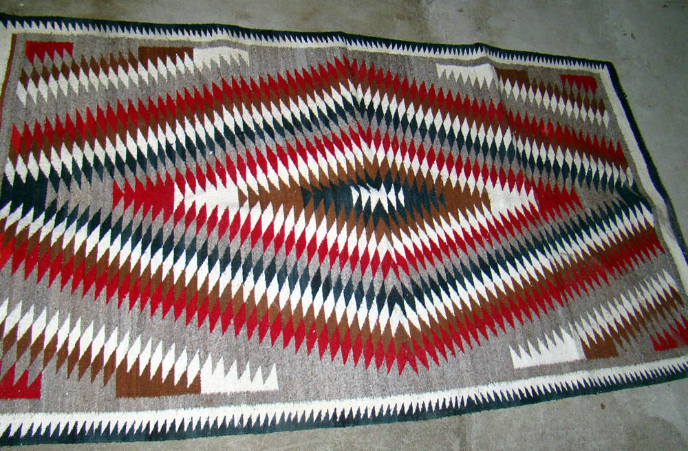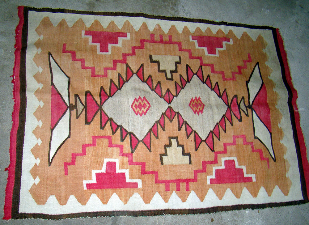 field with dark brown diamonds; 3’ x 5’ Navaho rug
