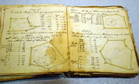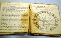 cloth log book dated 1806; 18th c. large wooden Buddha carved