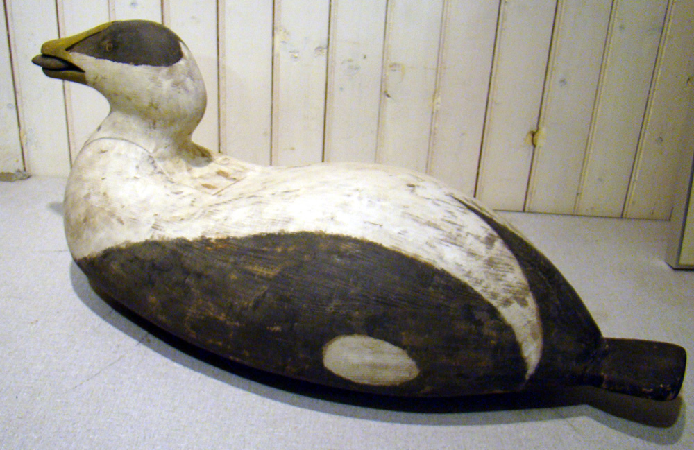 condition; Oversized Maine Eider Drake decoy 25" long with mussel