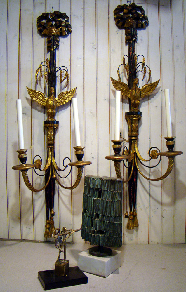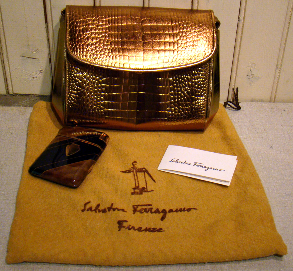 set of 18th c. wooden balance scales; Salvatore Ferragamo evening