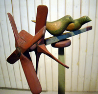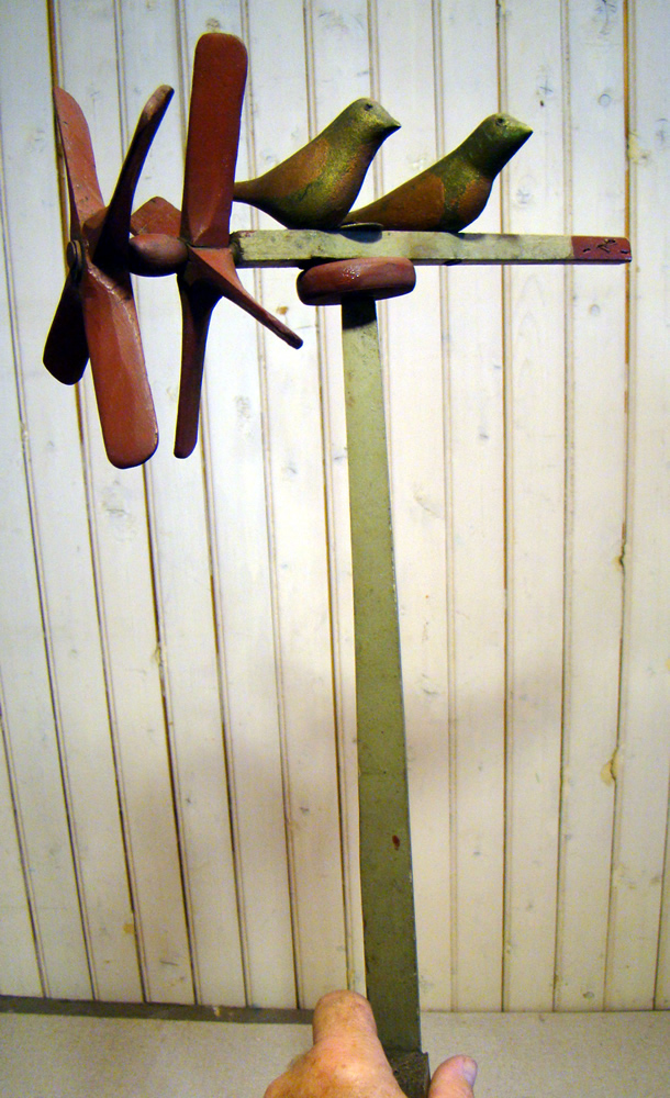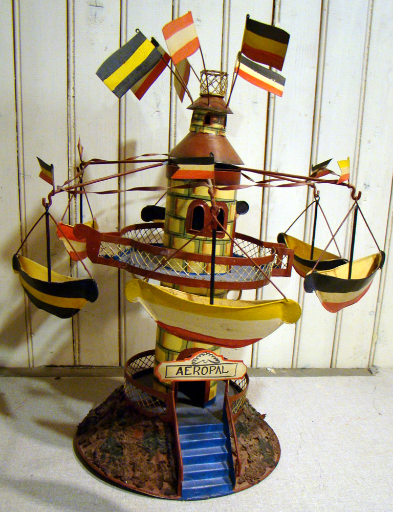 brass scope; homemade tin merry-go-round; wonderful blue and