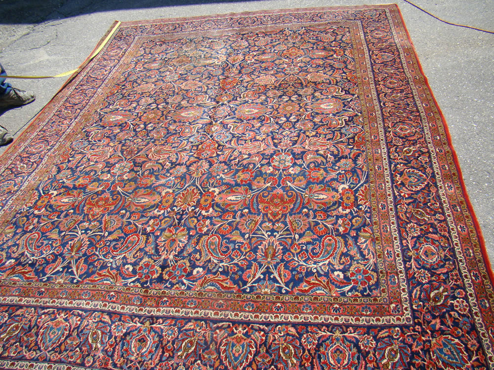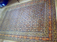 blue and white field; 4’5” x 3’8” antique
