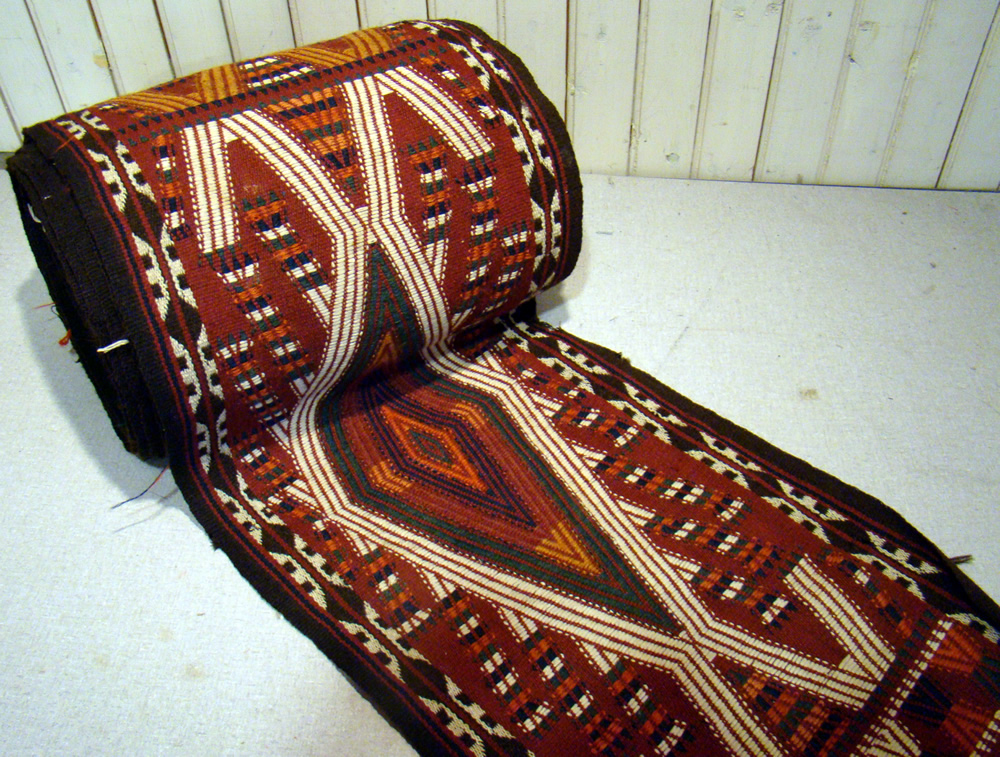 deco rugs; pair of Chinese saddlebags; 50-ft. x 12-inch flat