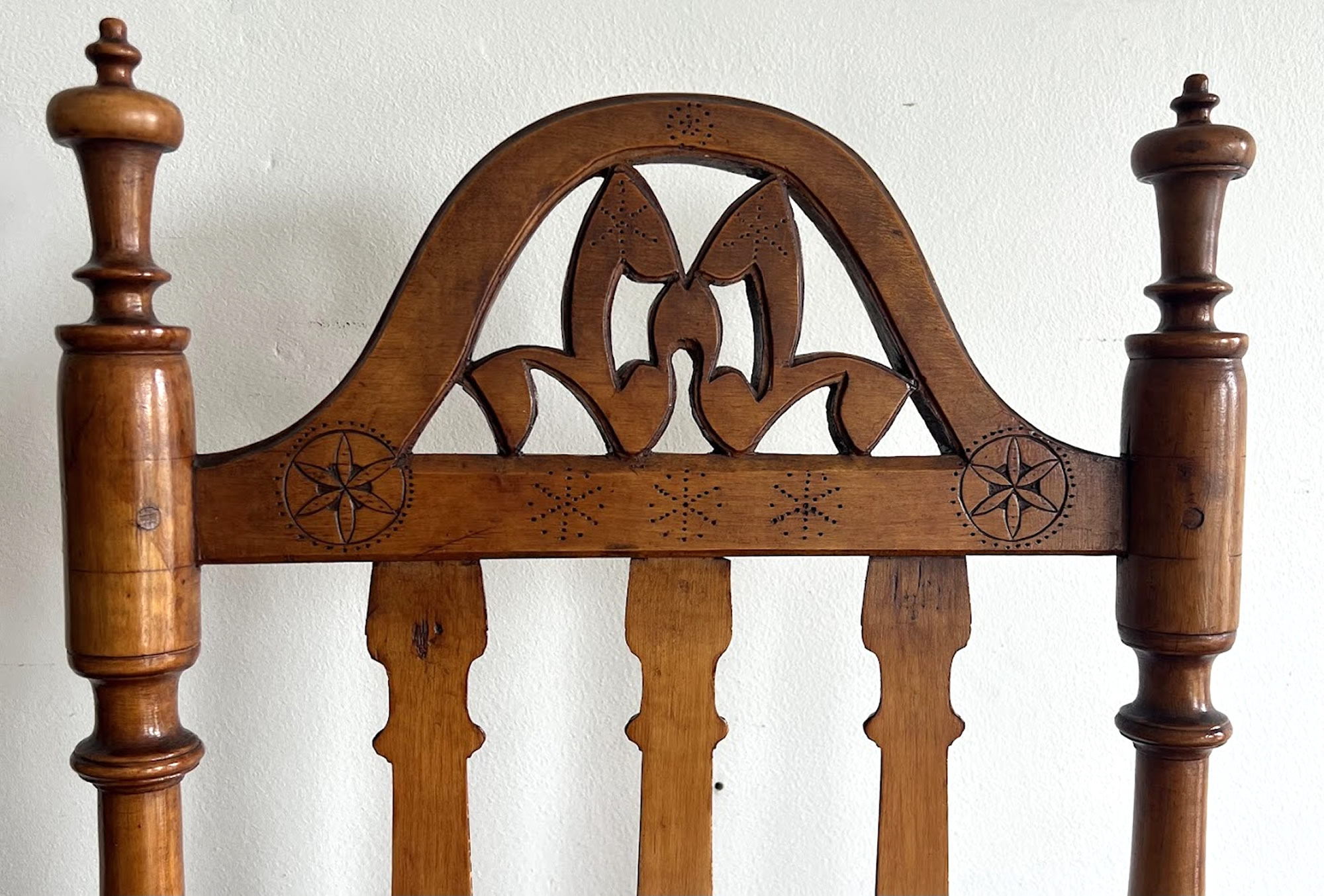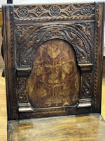 19th c. English oak court chair with hand carved and inlaid