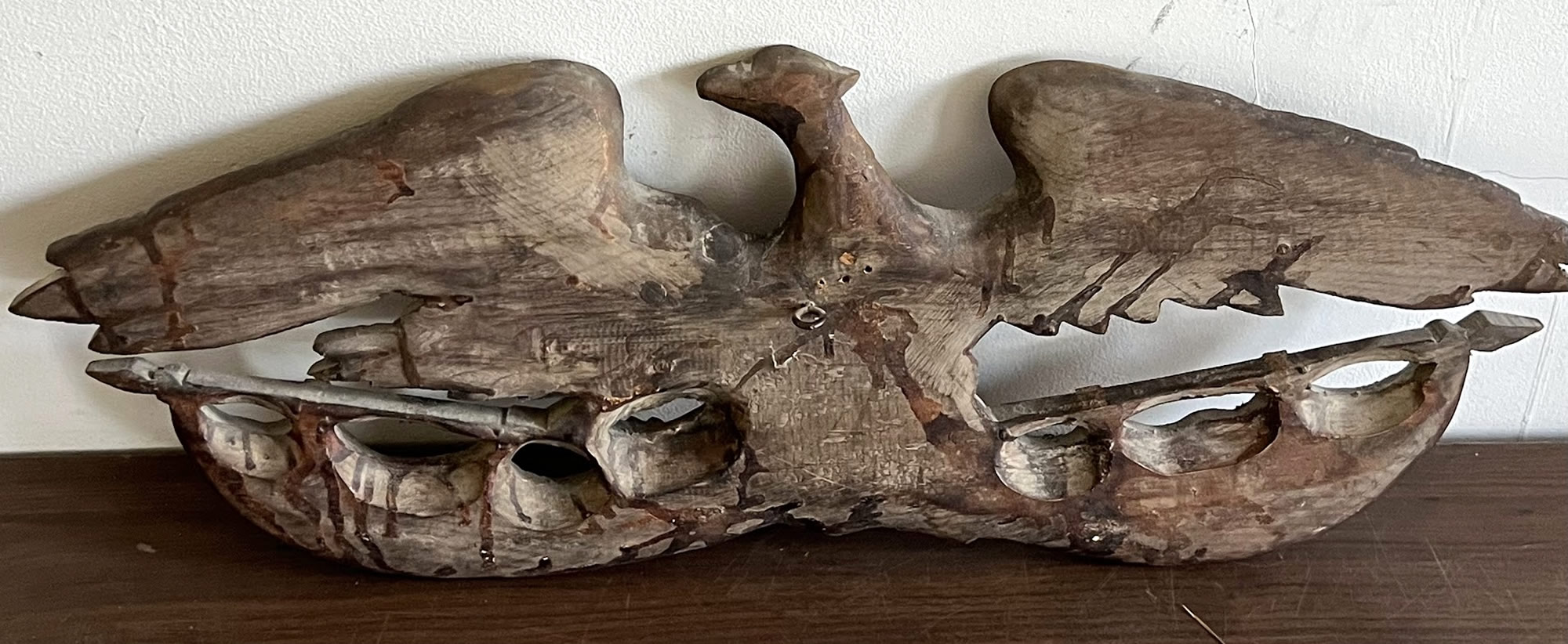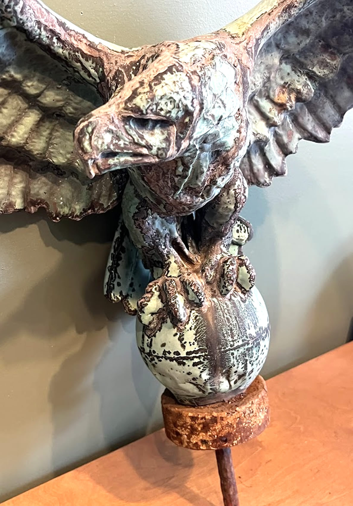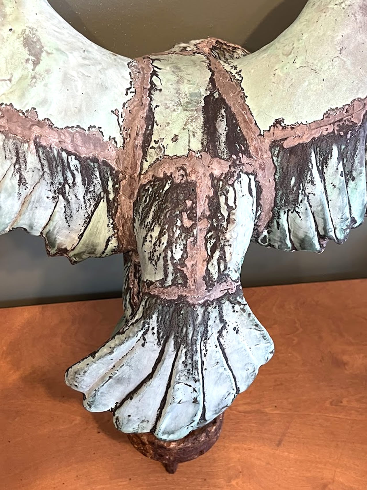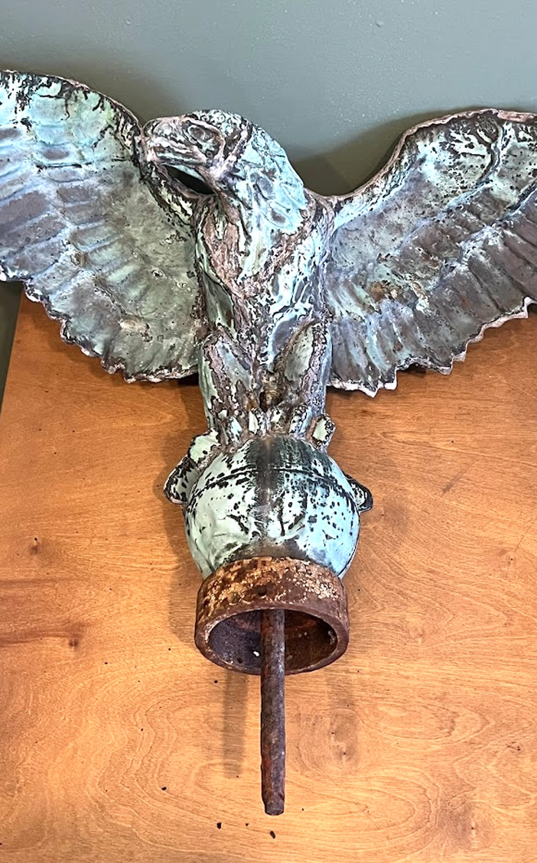| 19th c. copper pilot house or pole eagle, incredible surface, 32in. wing span |