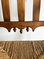 | Early bannister back armchair, great carvings and crest with Spanish feet |
