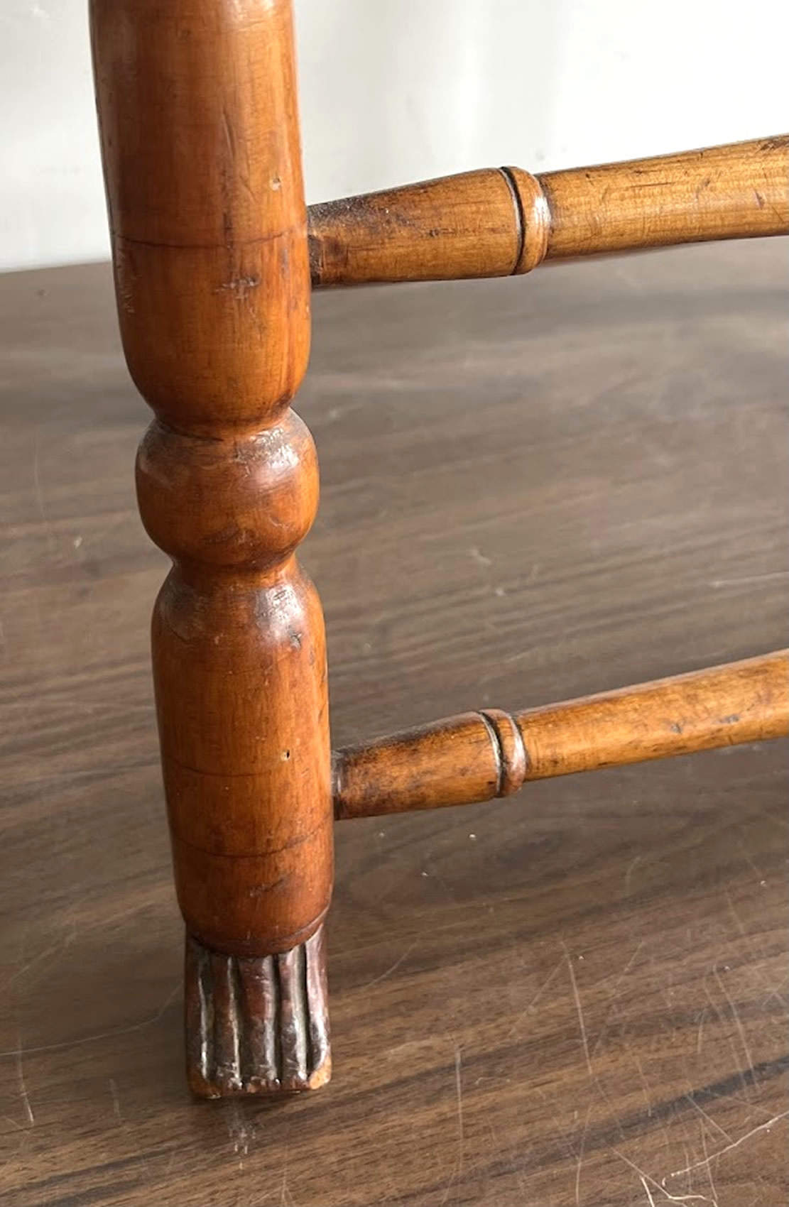 18th c. oval top button foot tavern table with stretcher base, 31w.x23d.x23.5h. |