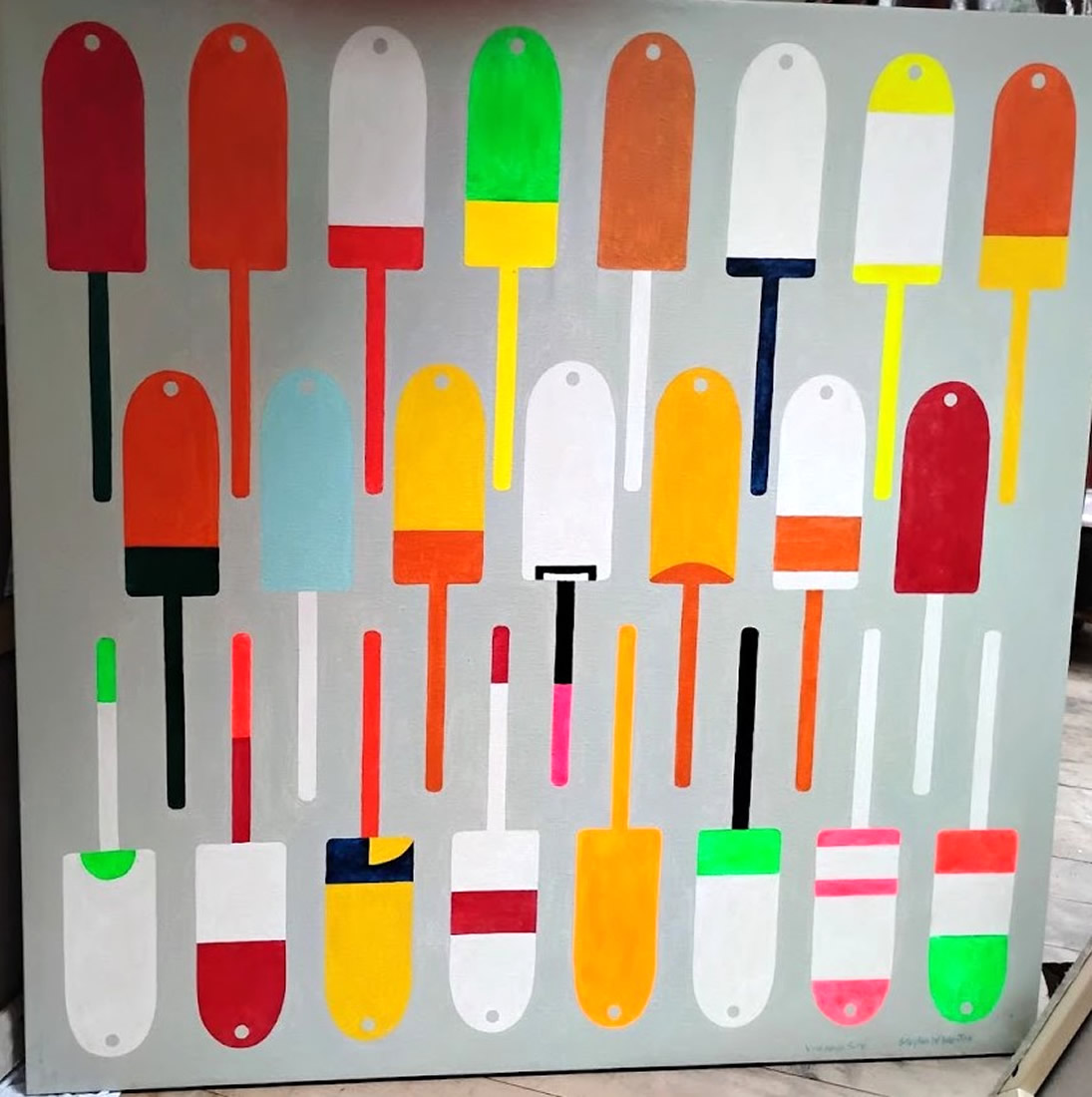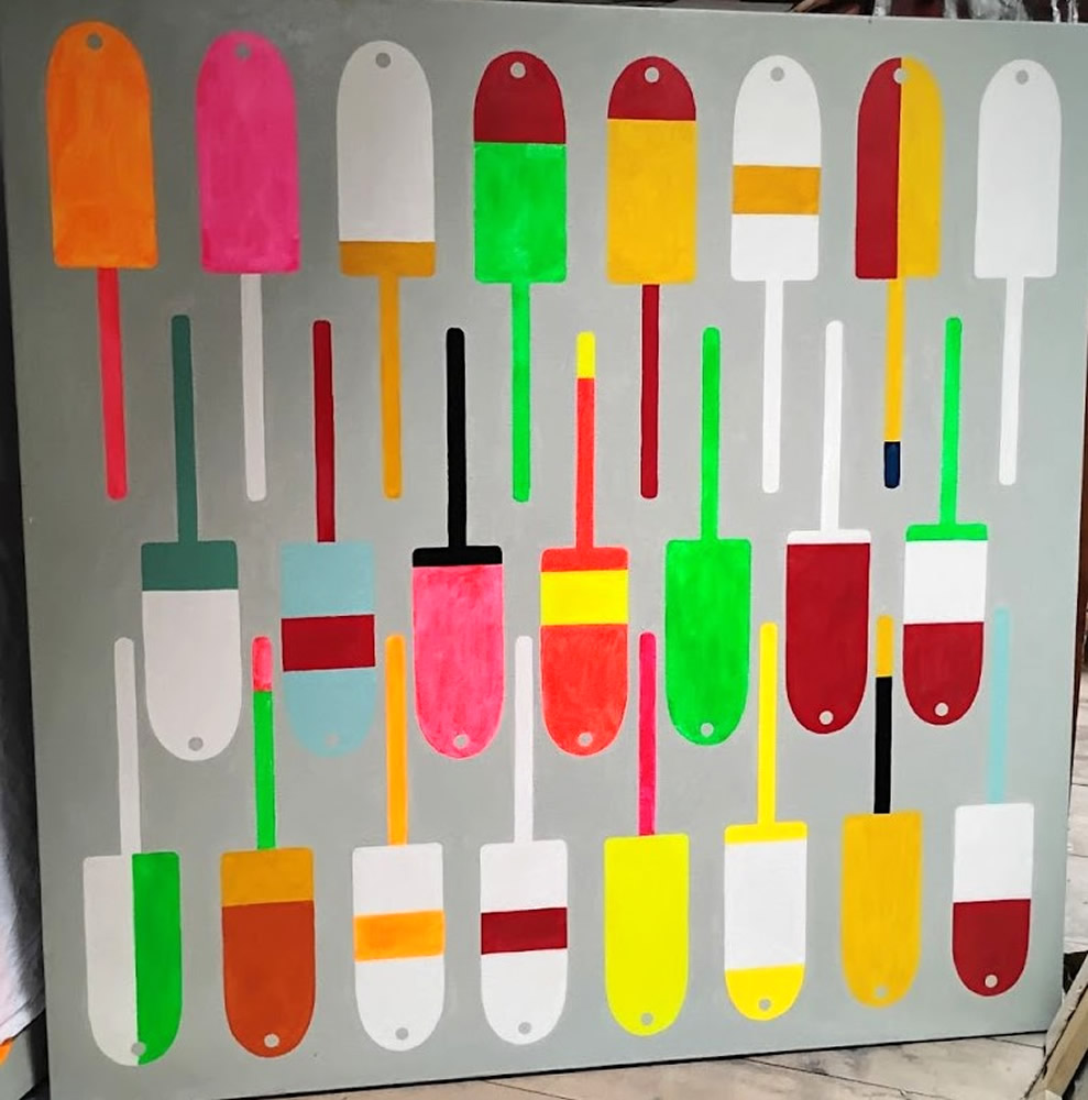 Vinalhaven suite of bouys from1990-2013, oils by Stephen Weston, 1951-2022, legendary Maine talent |