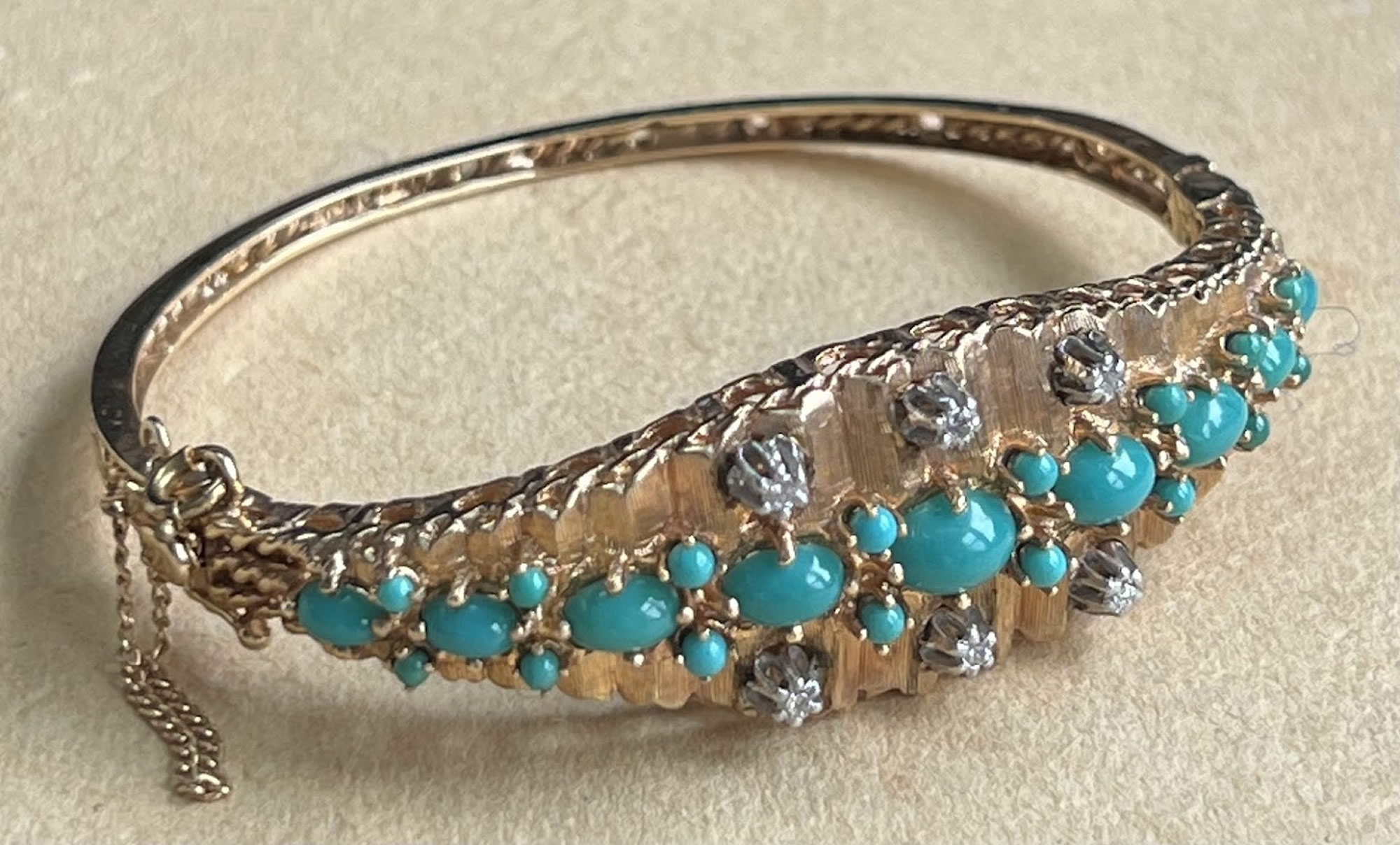 Turquoise and diamond bracelet, 14k, 13.7 dwt. |