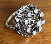 Antique diamond dinner ring, black enamel, 14k, 6.7dwt. |