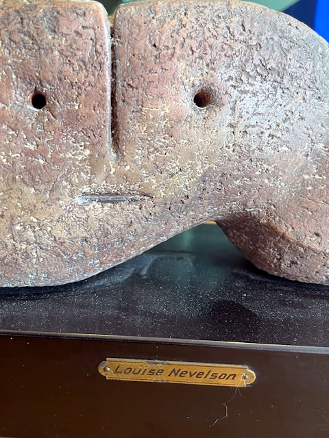 Textured tattistone or terracotta sculpture by Louise Nevelson,1899-1988, 14in.