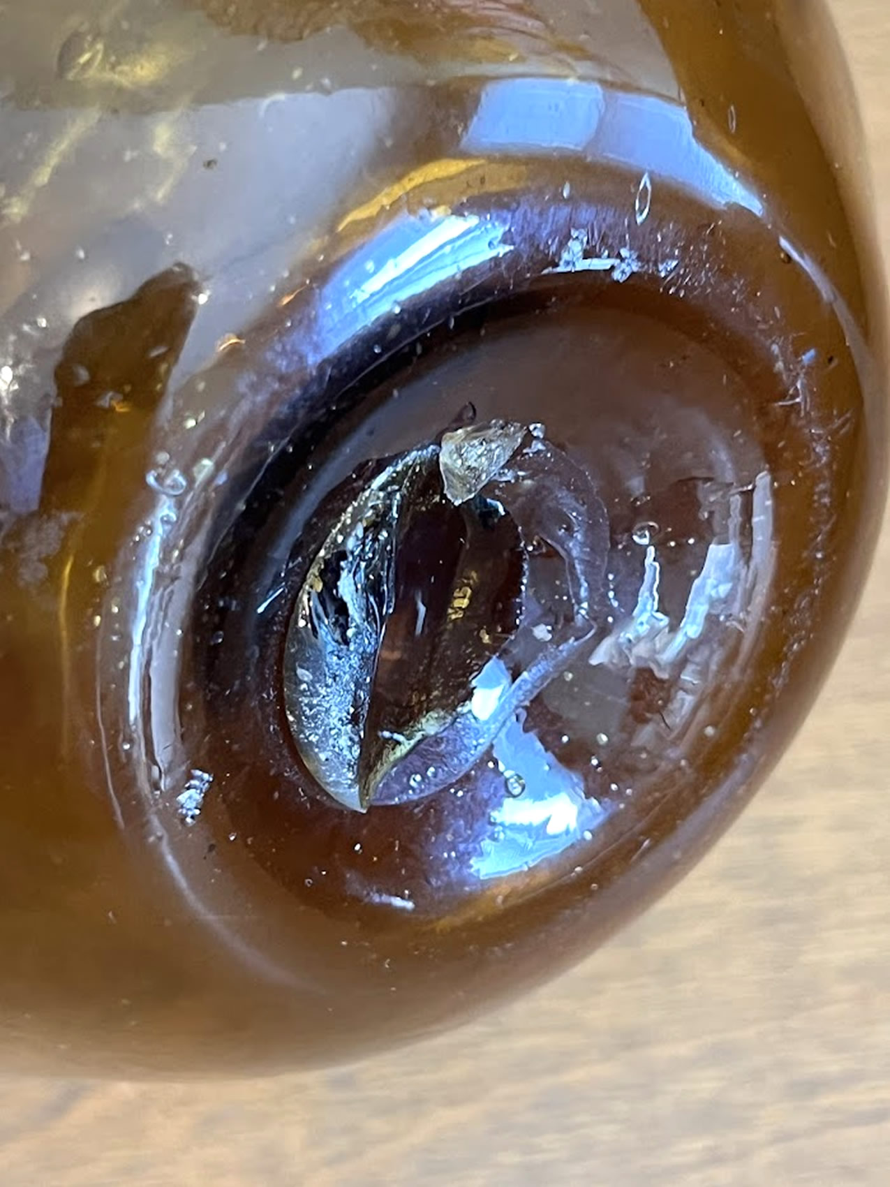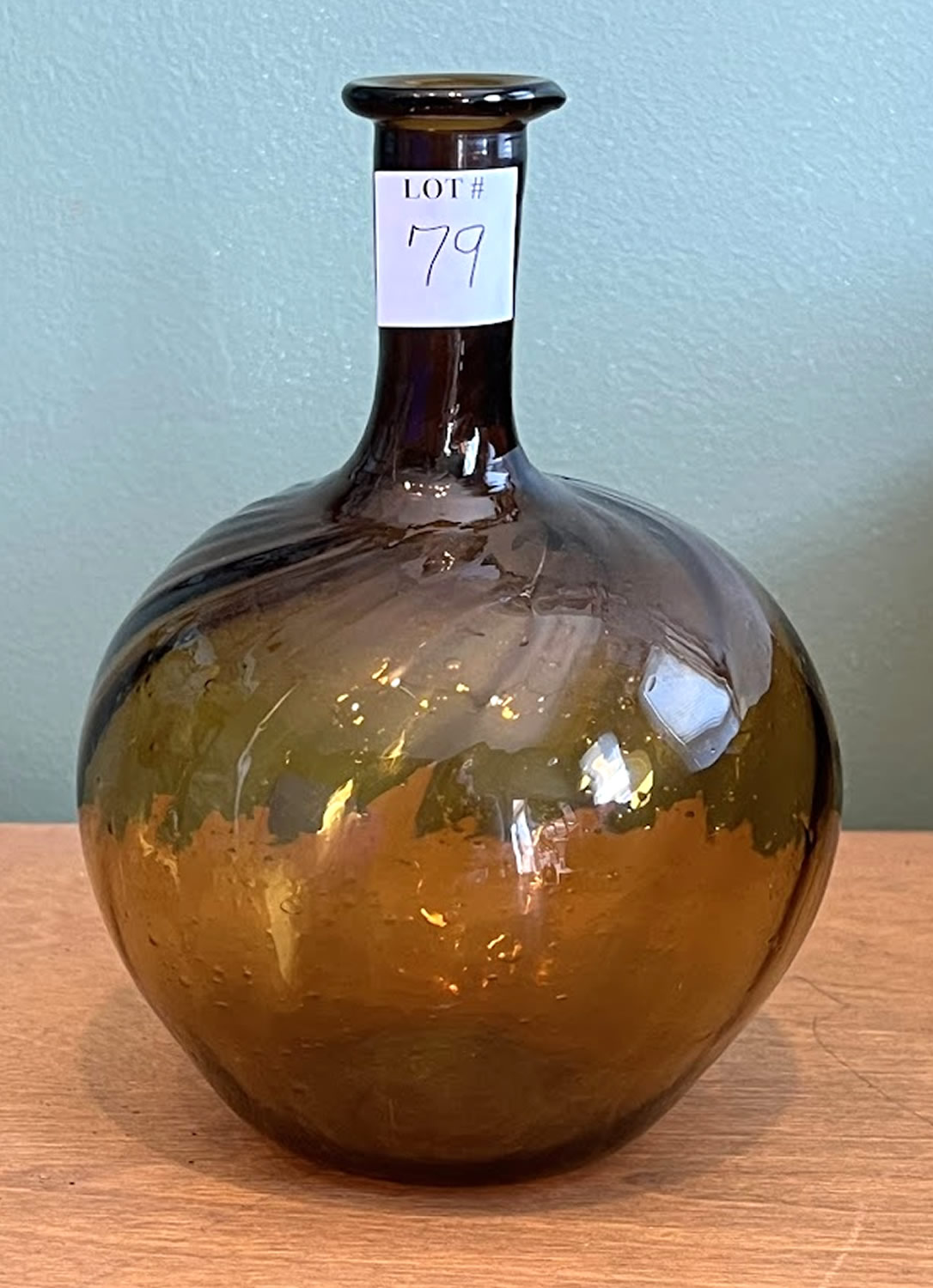 Zanesville style blown amber bottle, 7.5in |