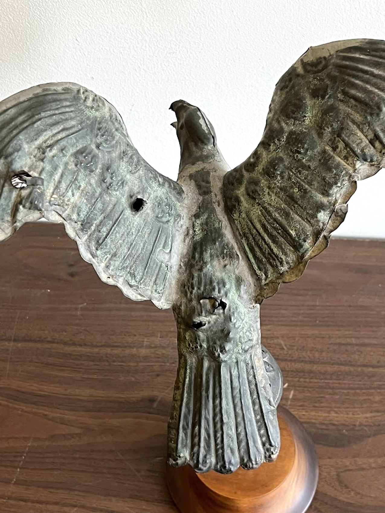 | Rare small size copper eagle weathervane, 12in.tall, some bullet holes |