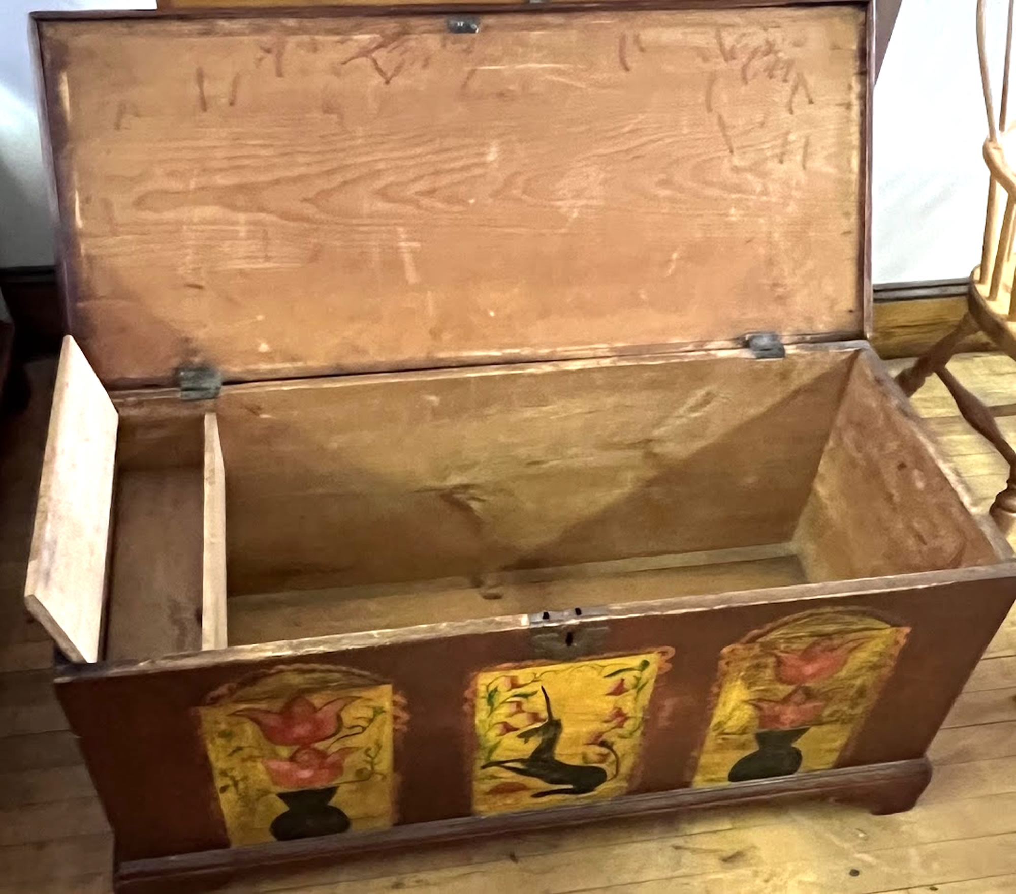 19th c. blanket chest with later Pennsylvania Dutch decoration |