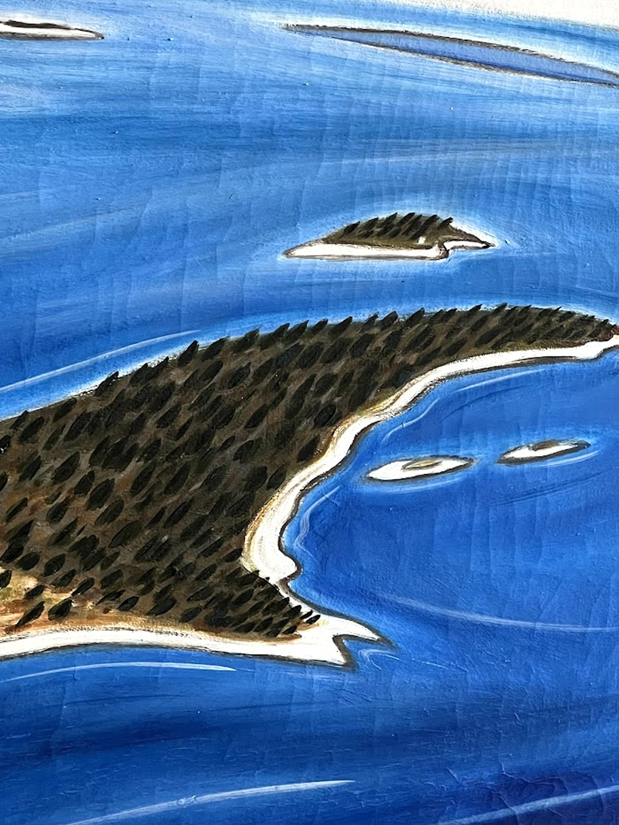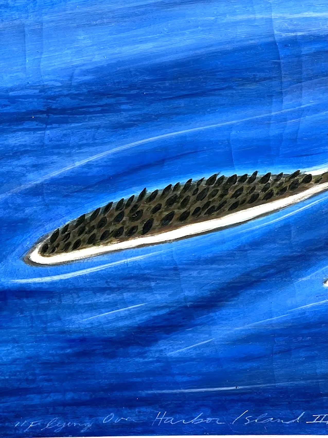 Important oil by Eric Hopkins,b.1951 titled (Flying over Harbor Island III) 36x48in. - Featured in the book Paintings of Maine by Arnold Skolnick, page 115.