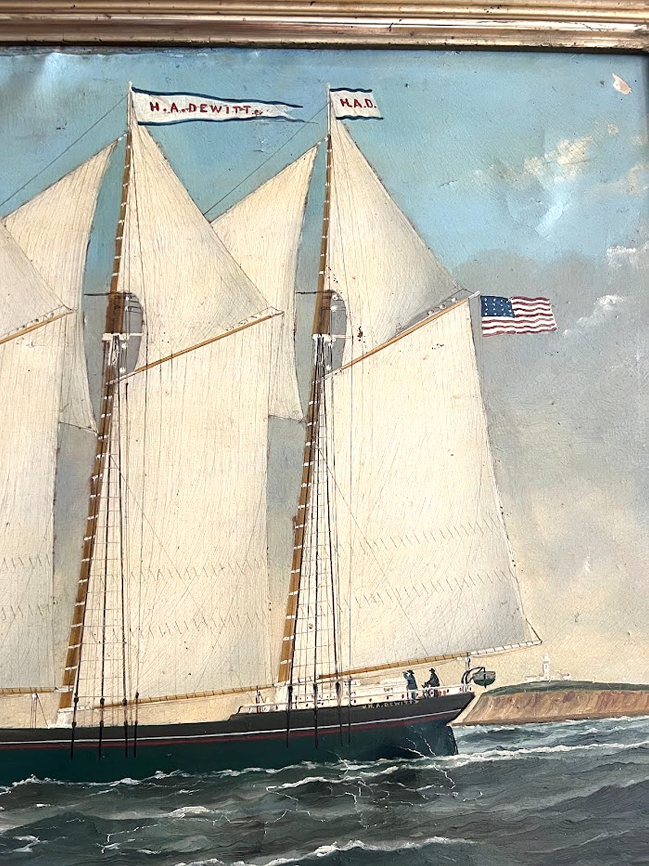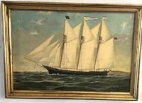 | Oil by William P. Stubbs, 1842-1909, Schooner H.A.DeWitt, built in Bath,Me 1873, 20x30in. |