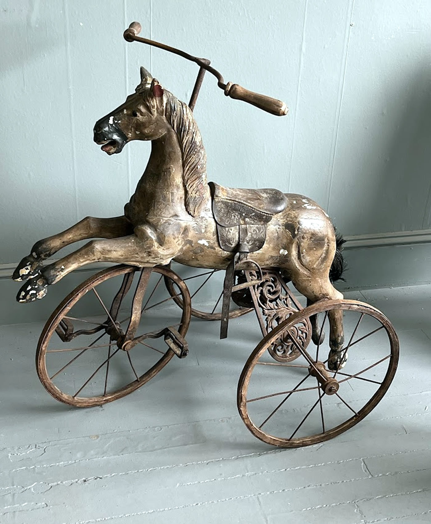 Early tricycle original paint, leather saddle |