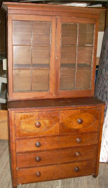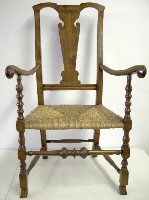 chest with pine top; rare country Queen Anne armchair with Spanish