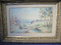 boat in original gold frame; wonderful w/c of country cottage