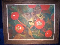 30" x 42"; o/b of roses, hips and moth by Maurice Day, 24" x