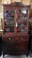 pine bootjack end shelf, Paine furniture kitchen cabinet, mahogany