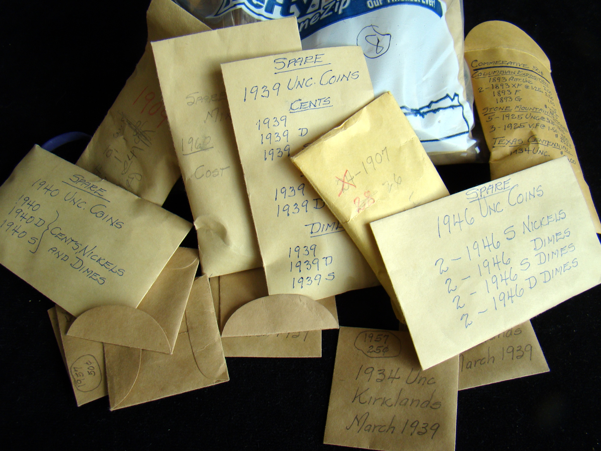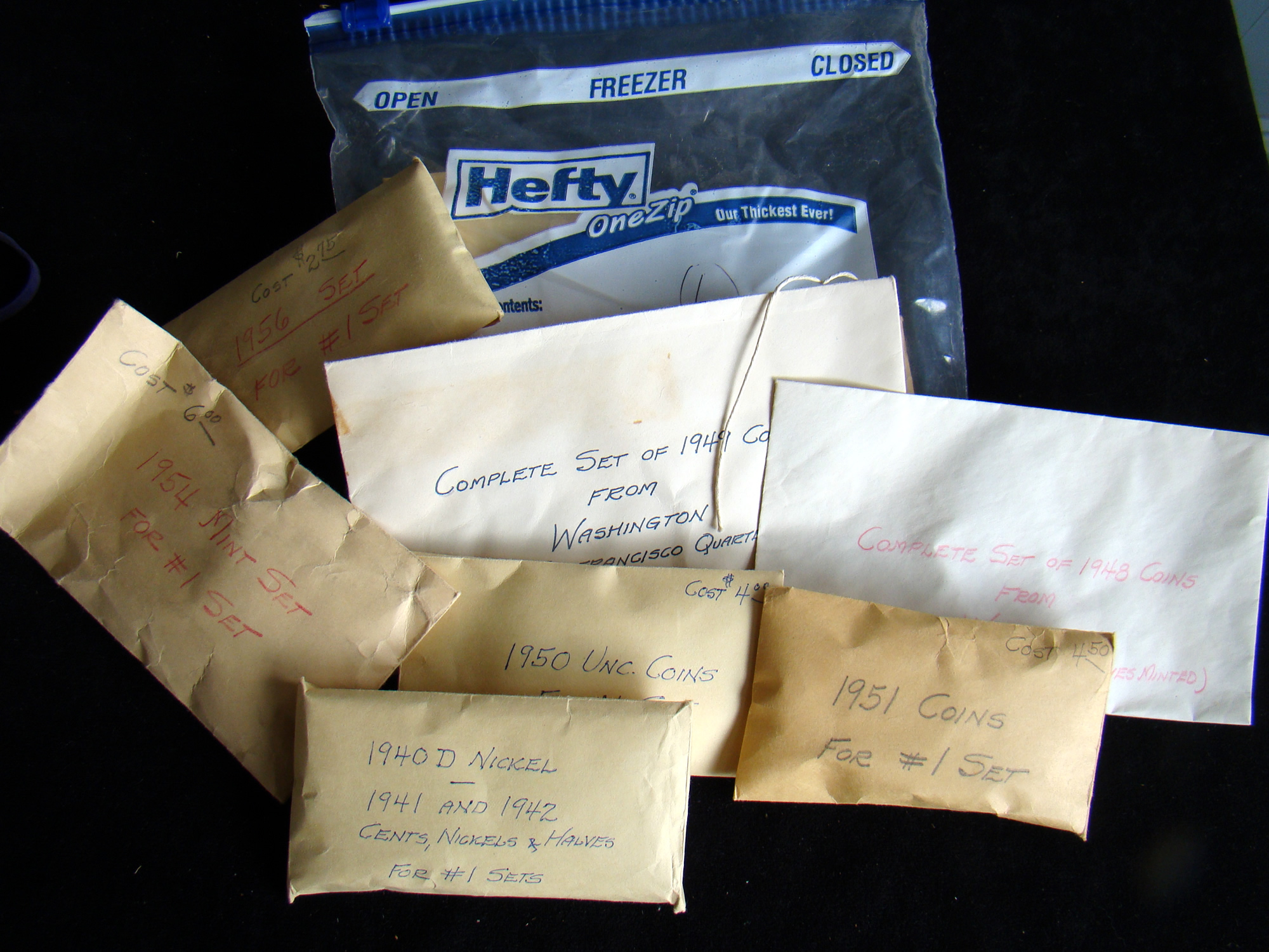 Uncirculated U.S. Coin Sets: 1938,1939,1940, 1943, two 1944, 1945, 1946, four 1947, two 1948, two 1949, 1951, two 1952, two 1953, 1954, 1955, 1956. Plus many spare uncirculated coins from the 1930s and 1940s.