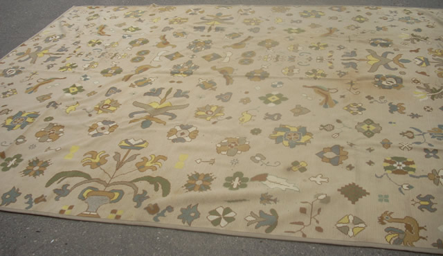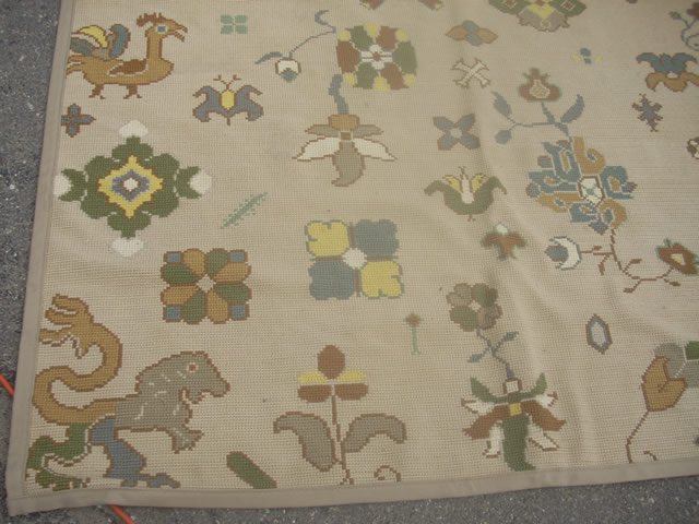 decorative tan field with animals - 11’2” x 14’2” carpet;