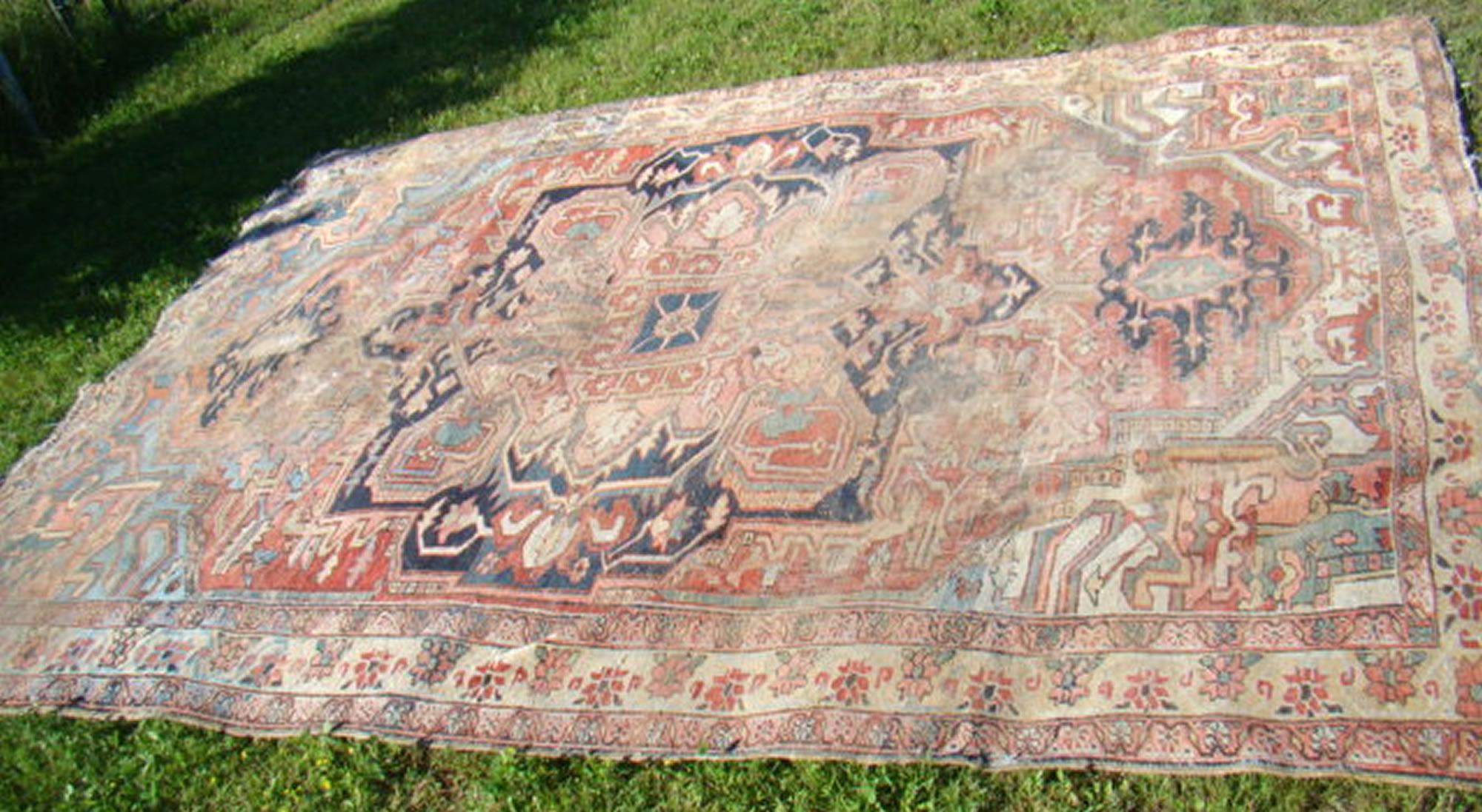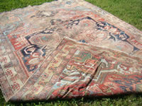 Early worn Heriz, 7'4" x 12'; Persian runner, 4'5" x 7'; more worn oriental rugs along with several hooked rugs to be sold in lots; 19th c. felt feather-stitched penny rug; and more.