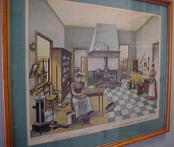 15" x 18", Dutch print w/woman peeling potatoes etc.