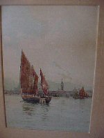 w/c by Percy Sanborn of boats in original frame 9" x 14".