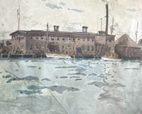 Watercolor Port Clyde, Me sardine factory, 1908, R.W.Porter |