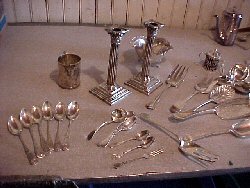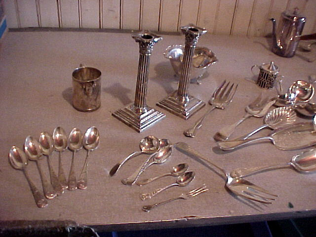 soup spoons, pair of Starr, Black of Frost candlesticks, 2 partial